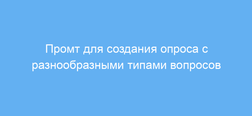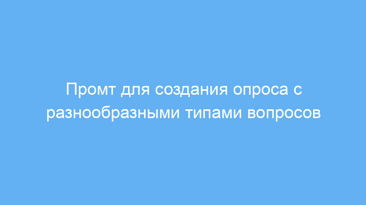Этот промт предназначен для всех, кто хочет быстро и грамотно создать опрос для сбора информации. Особенно он полезен маркетологам, исследователям, HR-специалистам и преподавателям, которым необходимо получить качественные и структурированные данные с помощью разных типов вопросов.