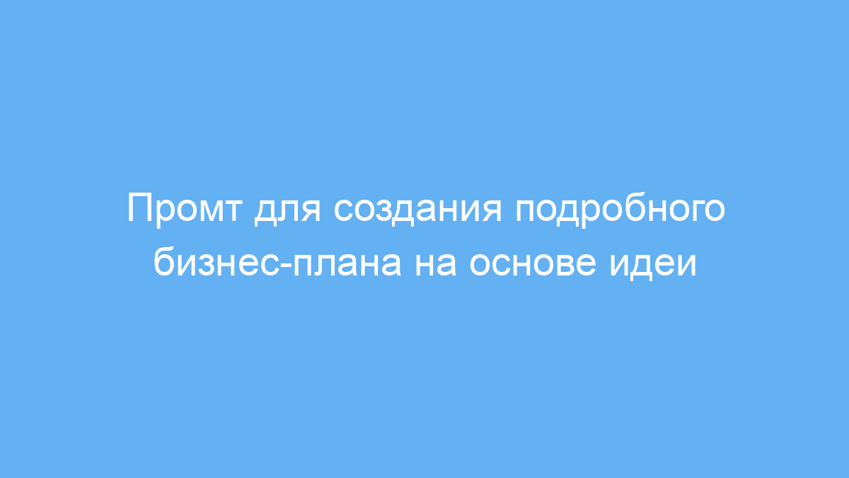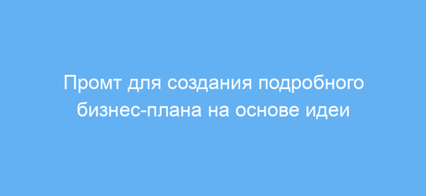Для эффективной работы с этим промтом внимательно вводите чёткую и развернутую идею бизнеса. Чем больше деталей, тем точнее и полезнее будет бизнес-план.