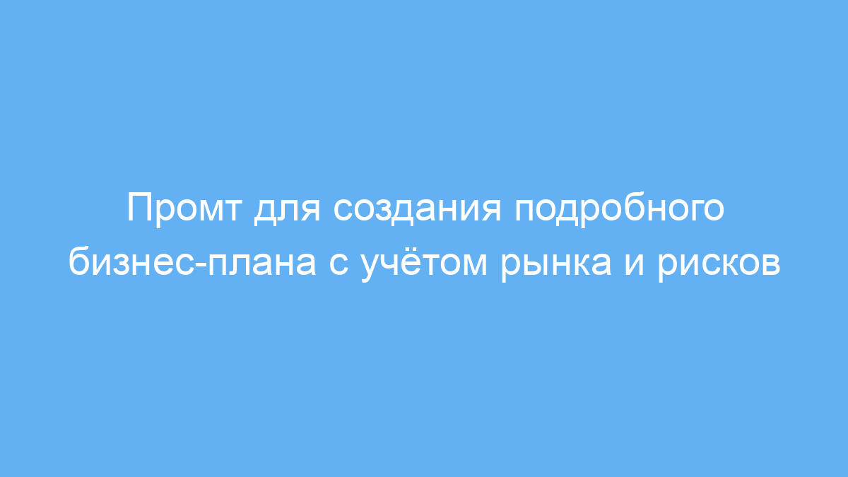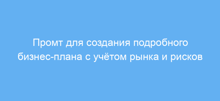 Этот промт предназначен для предпринимателей, стартаперов и консультантов, которым нужно быстро получить структурированный бизнес-план. Он поможет тем, кто хочет построить или улучшить бизнес-стратегию с учётом актуальных тенденций, возможных рисков и внутренних особенностей компании.