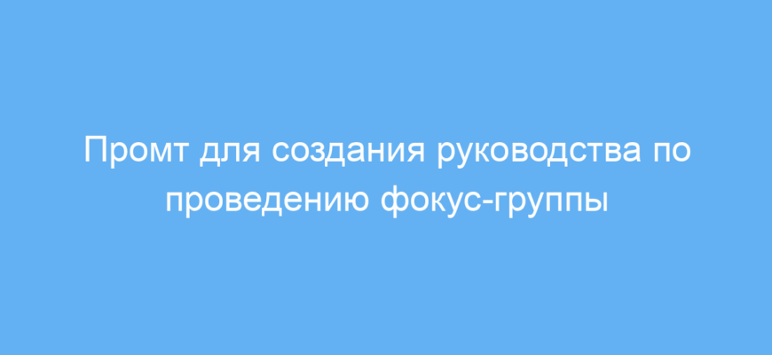 Принцип работы промта прост: пользователь указывает тему исследования и целевую аудиторию, а нейросеть генерирует детальный план с указанием структуры, основных тем, вопросов и рекомендаций по проведению фокус-группы.