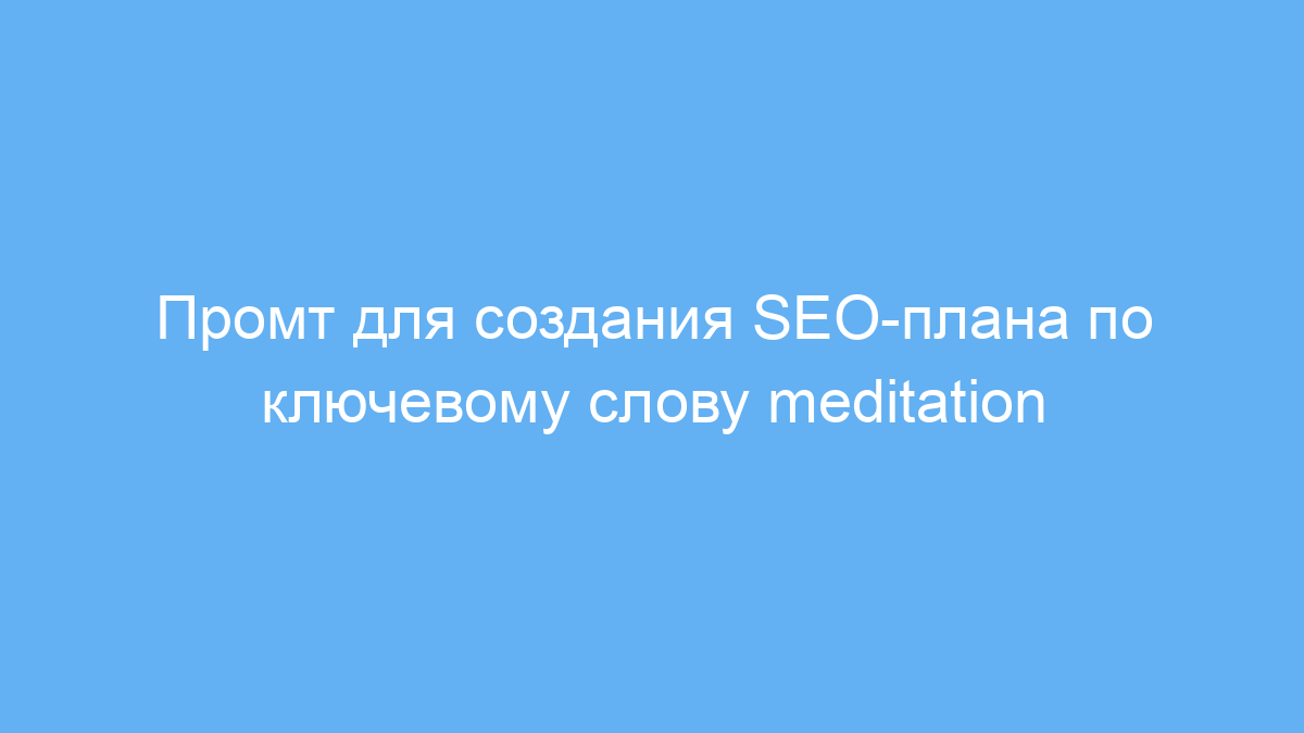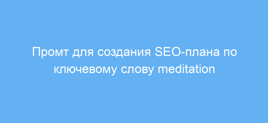 Этот промт предназначен для специалистов по SEO, маркетологов и контент-менеджеров, которым нужно быстро разработать подробный план SEO-контента на английском языке по теме meditation. Он помогает систематизировать ключевые слова, разделить их на смысловые кластеры и определить поисковое намерение пользователей.