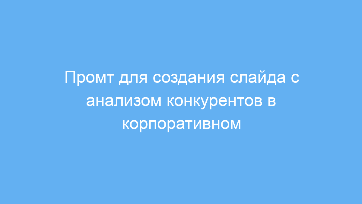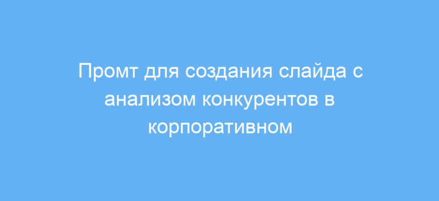 Работает промт следующим образом: нейросеть получает задачу сформировать слайд с анализом конкурентов в корпоративном стиле — это значит, что оформление будет выдержано в официальной манере, подходящей для деловой презентации. Далее данные будут представлены в виде сравнительной таблицы, где будут отражены ключевые показатели и преимущества каждой компании.