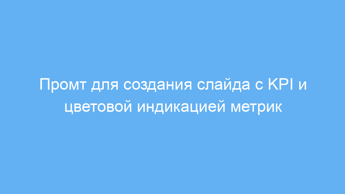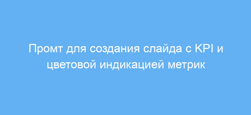 Этот промт предназначен для специалистов, которым нужно быстро создать визуальный слайд с ключевыми показателями эффективности (KPI). Его используют маркетологи, менеджеры проектов, аналитики и все, кто работает с отчетами и презентациями.