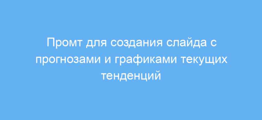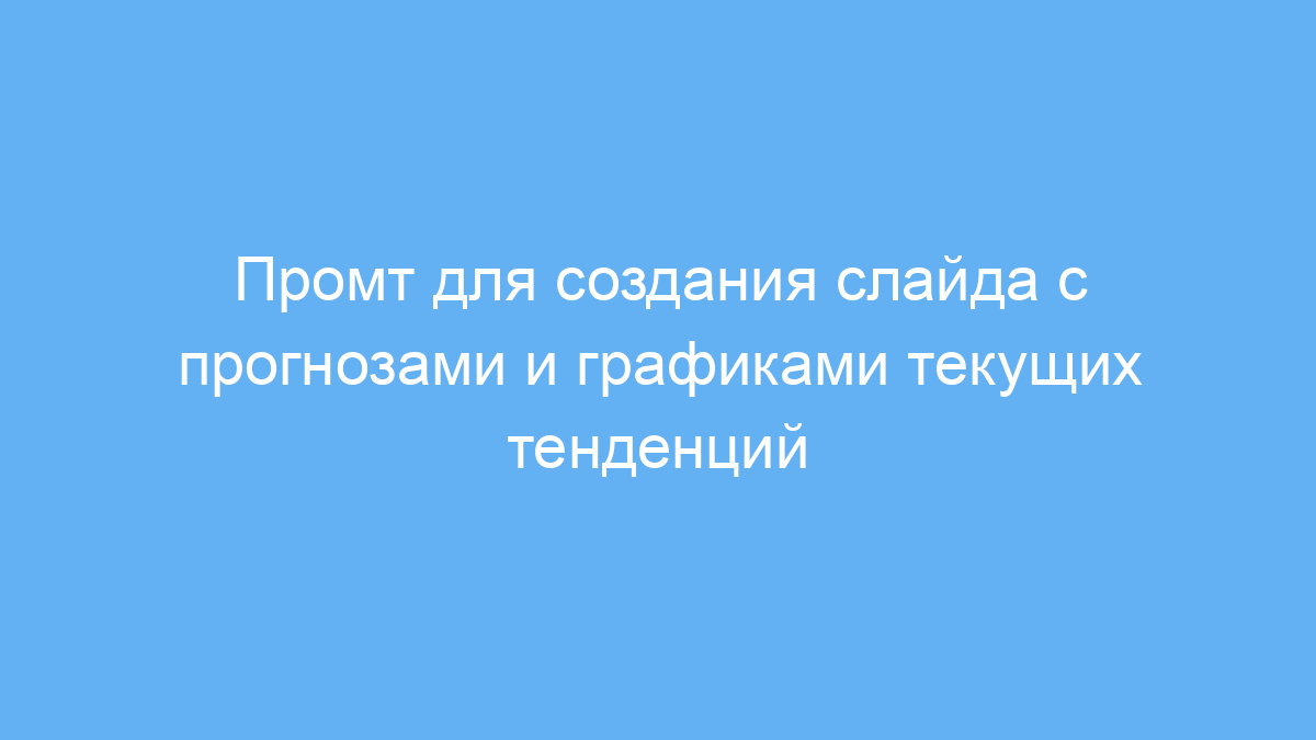 Промт работает следующим образом: пользователь задаёт параметры — тип графика и тематику трендов. Нейросеть формирует структурированный слайд, где отображаются прогнозы и соответствующие графики. Это упрощает восприятие информации и делает отчёты более наглядными и убедительными.