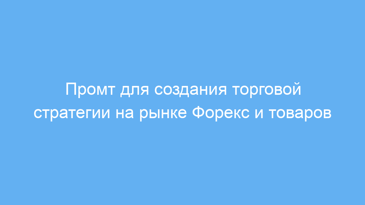 Этот промт создан для трейдеров и аналитиков, которые хотят быстро получить готовую торговую стратегию с учётом управления рисками. Он помогает составить пошаговый план торговли на рынке Форекс или товарных рынках, используя конкретные индикаторы, валютные пары и таймфреймы.