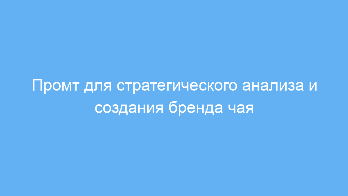 Этот промт предназначен для специалистов по стратегическому планированию, маркетологов, предпринимателей и студентов, которым важно выбрать правильный метод анализа для разработки бизнеса. Особенно полезен он тем, кто хочет создать сильный бренд, способный конкурировать с ведущими компаниями, например, с Nayuki в чайной сфере.
