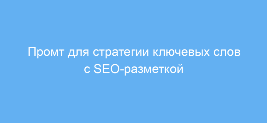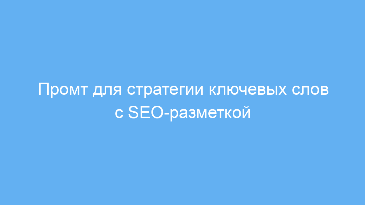 Принцип работы промта прост: пользователь вводит тему, а нейросеть выдаёт связанные ключевые слова, распределённые по кластерам, определяет поисковый интент, предлагает подходящий заголовок, мета-тег и описание. Такой подход упрощает создание семантического ядра и помогает оптимизировать страницу для поисковых систем.