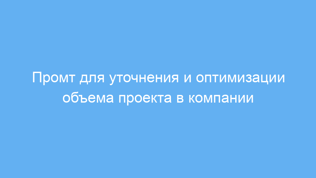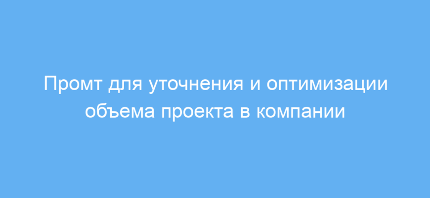 Этот промт помогает системно и подробно проработать описание объема проекта, учитывая цели компании и лучшие практики отрасли. Он освобождает время, минимизирует риски и способствует созданию качественной проектной документации, повышающей шансы на успешное выполнение задач.
