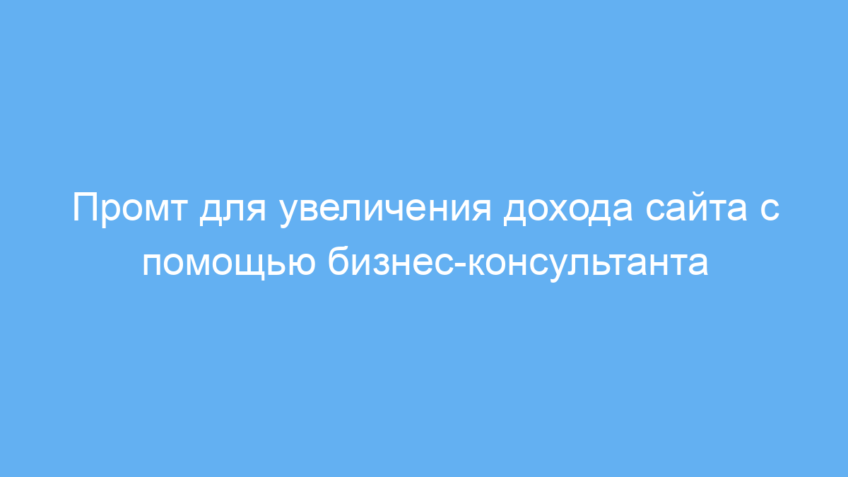 Этот промт предназначен для владельцев сайтов, интернет-маркетологов и бизнес-консультантов, которые хотят увеличить доход своего сайта. Он помогает выявить скрытые возможности роста, которые часто пропускают другие специалисты, и составить подробный план действий для повышения доходов проекта.