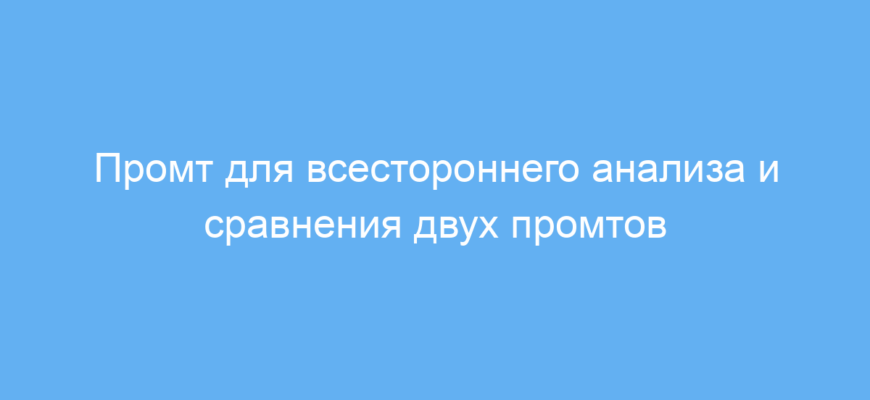 Использование этого промта позволяет быстро и подробно анализировать два запроса к нейросети, выявлять их преимущества и недостатки, а также получать рекомендации, которые помогут повысить качество и эффективность работы с генеративным искусственным интеллектом. Это экономит время на эксперименты и улучшает конечный результат.