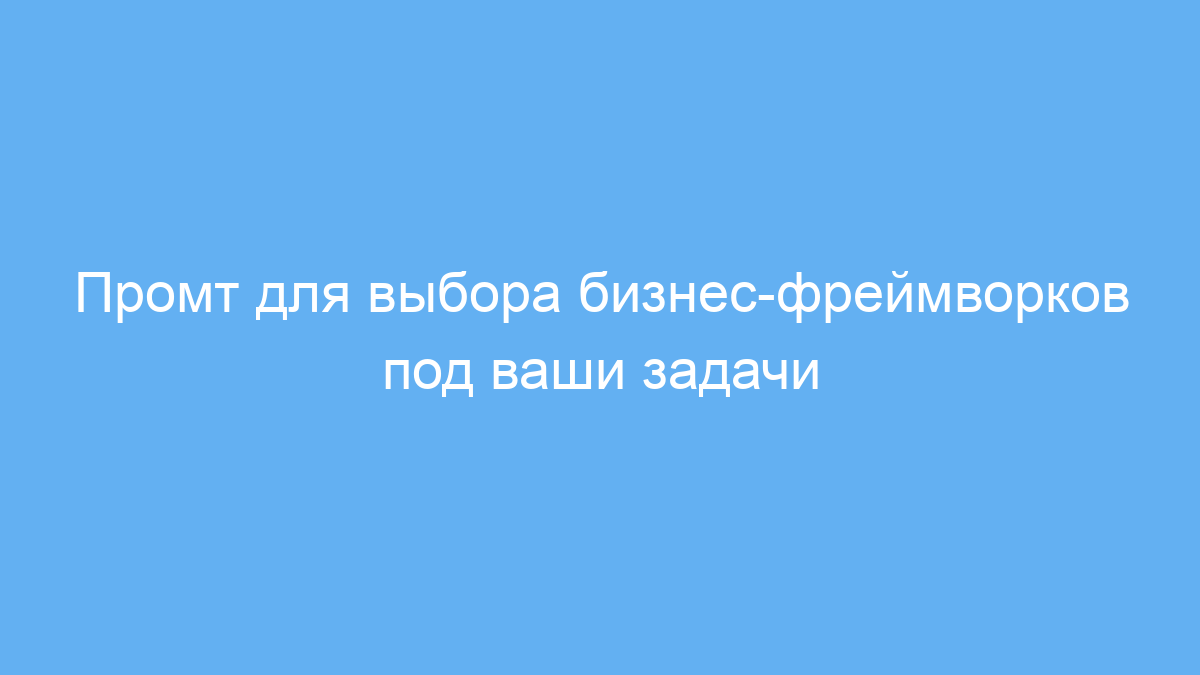 Главное преимущество: Быстрый и системный подбор бизнес-фреймворков, адаптированных под ваши задачи и ресурсы.