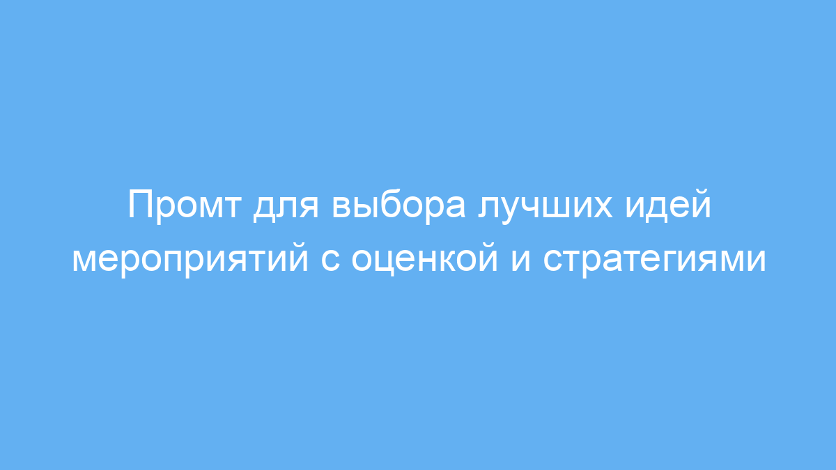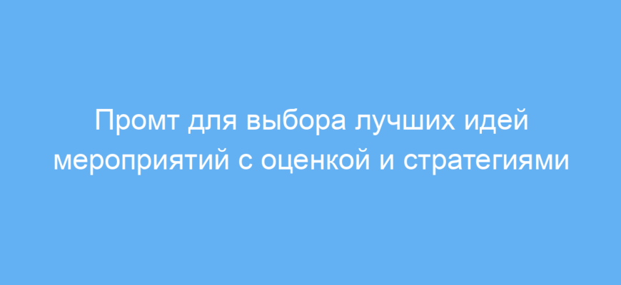 Промт работает так: вы предоставляете список идей для мероприятия и задаёте параметры — кто ваша аудитория и какая цель у события. Нейросеть оценивает каждую идею по заданным критериям и предлагает возможные стратегии для реализации понравившихся вариантов. Так вы получаете структурированный отчет, который можно использовать для принятия решения.