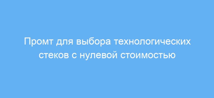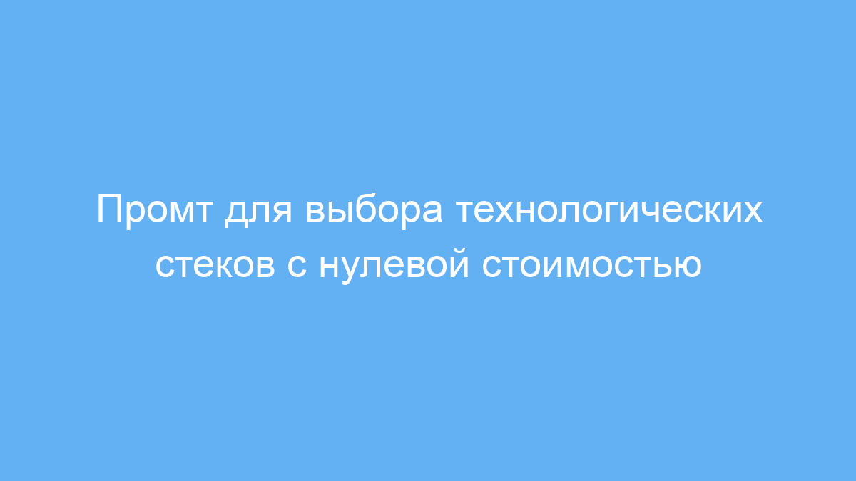 Этот промт создан для стартаперов и разработчиков-одиночек, которым важно подобрать подходящие технологические стеки без дополнительных затрат на развёртывание. Он помогает найти бесплатные технологии, которые легко использовать, масштабировать и поддерживать.