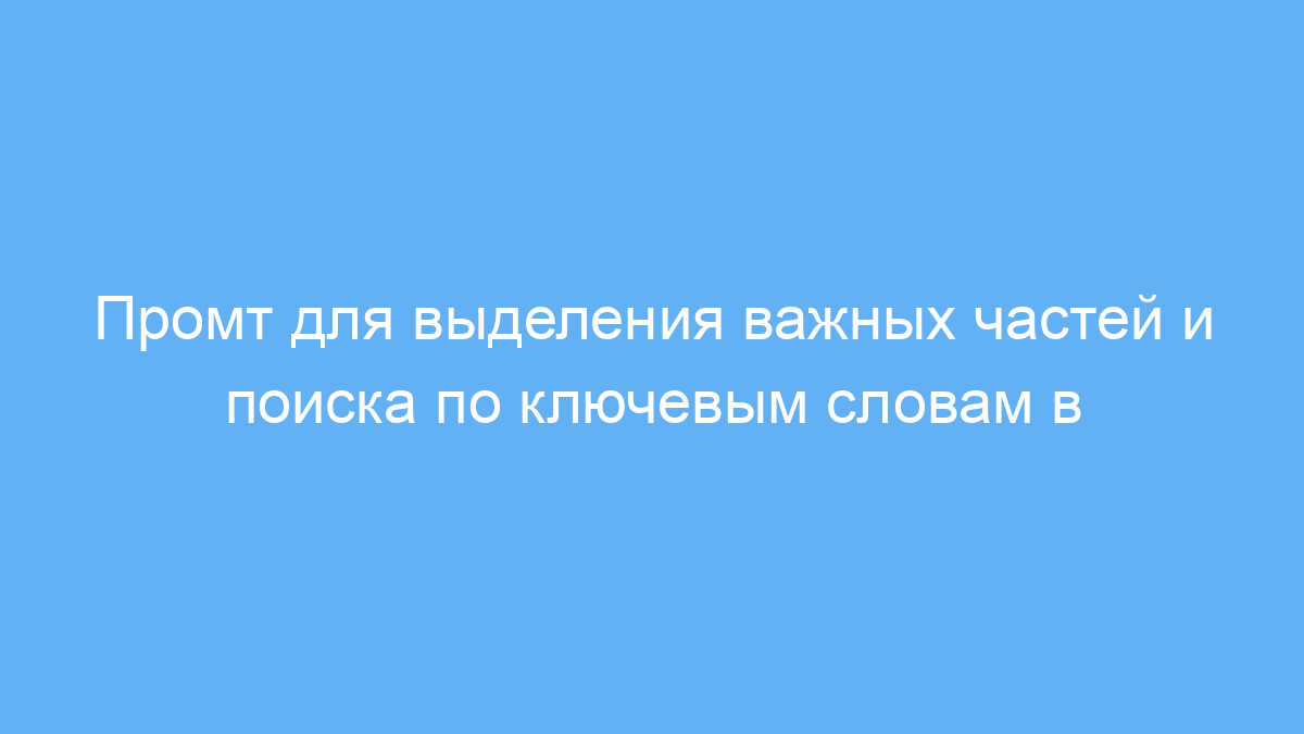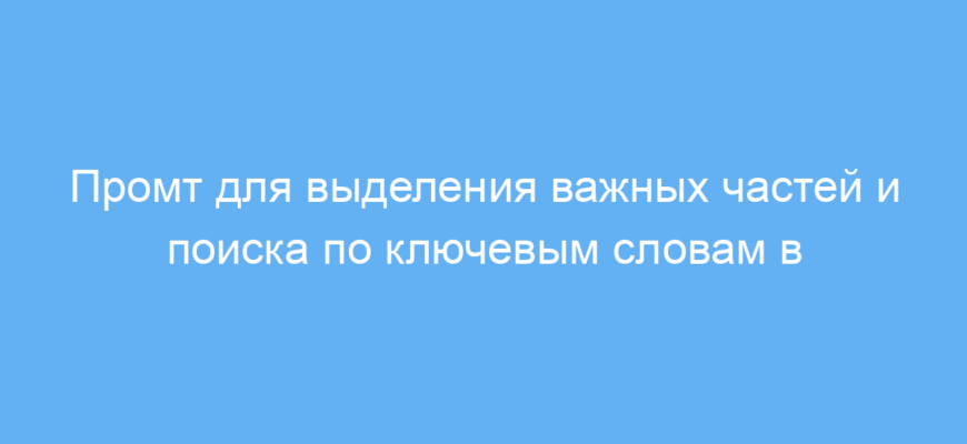 Промт также полезен, когда нужно найти конкретные ключевые слова в тексте и получить контекст их появления — без искажений и потери смысла. Пользователь отправляет ИИ транскрипт, затем указывает, что требуется: либо выделить основные части, либо выполнить поиск по ключевым словам. Итог подается в виде удобных нумерованных блоков, чтобы облегчить чтение и анализ.