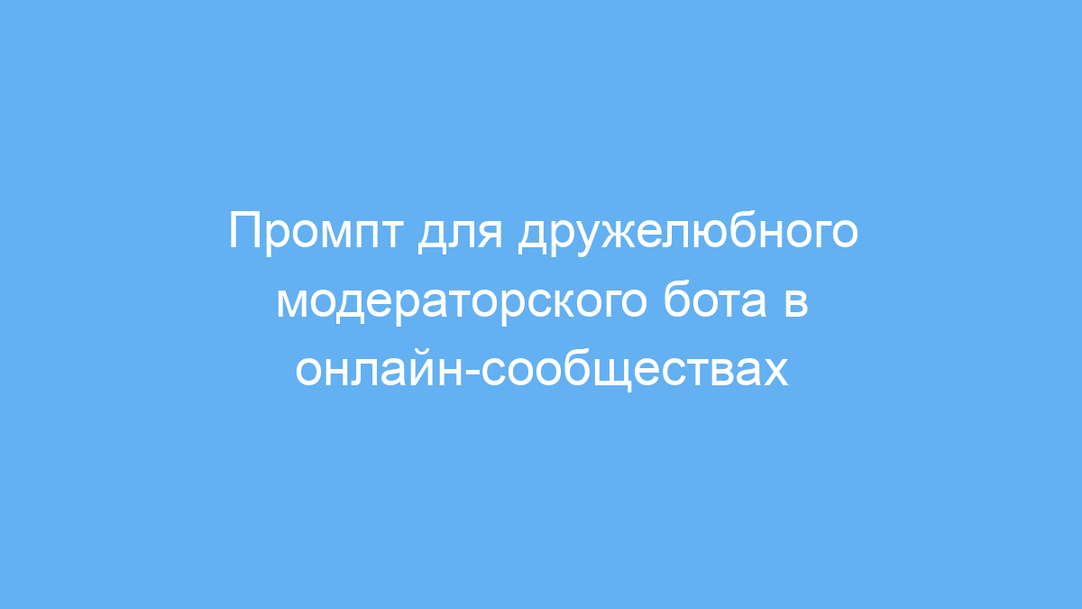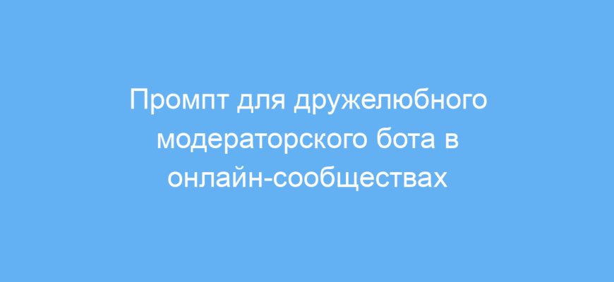 Этот промпт помогает создать в онлайн-сообществе атмосферу дружелюбия и безопасности без излишней строгости. Он экономит время модераторов, автоматически предупреждает о нарушениях и поддерживает позитивный настрой общения. Особенно полезен для сообществ с молодой аудиторией, где важна лёгкая и понятная манера общения.