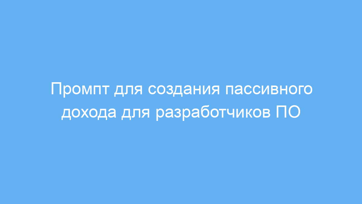 Этот промпт создан для разработчиков программного обеспечения, которые хотят организовать пассивный доход, не отвлекаясь от основной работы. Особенно полезен тем, кто занимается веб- и мобильной разработкой и ищет варианты дополнительного заработка на автомате.