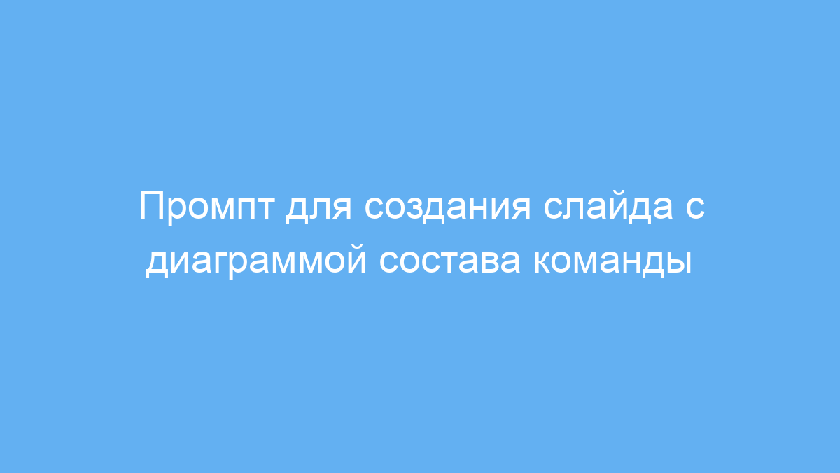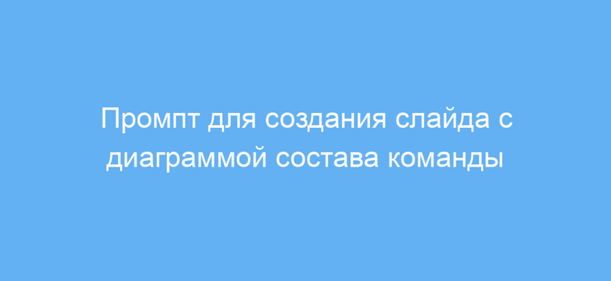 Использование данного промпта помогает быстро создавать информативные и привлекательные слайды с визуализацией состава команды. Это экономит время на подготовку презентаций и делает информацию более наглядной для аудитории.