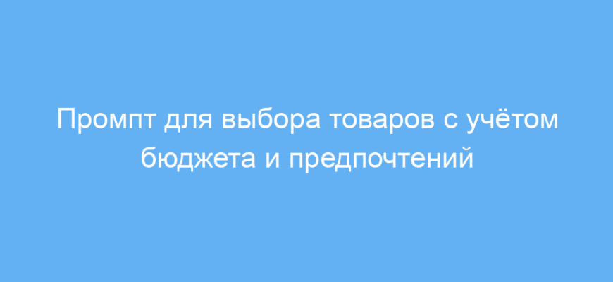 Суть промпта в том, что вы сообщаете своему «личному покупателю» — нейросети — желаемый бюджет и запрос, например, тип товара или параметр. Модель в ответ выдаёт простой список рекомендуемых товаров, подходящих под ваши условия. Это облегчает планирование покупок и помогает сделать выбор без лишних деталей, подходящих для дальнейшего детального изучения.