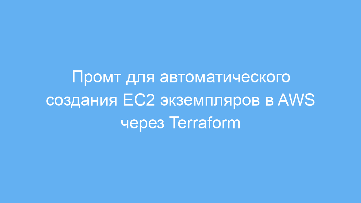 Работает промт просто: пользователь задаёт параметры через переменные, а Terraform автоматически создаёт EC2 экземпляры с этими настройками. Это позволяет использовать один шаблон для разных окружений и конфигураций, просто изменяя входные данные.