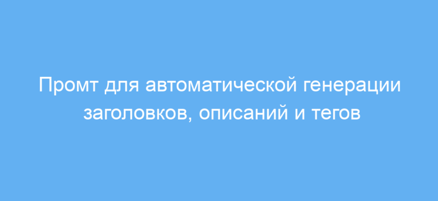 Использование данного промта экономит время на придумывание заголовков, описаний и тегов. Он помогает создавать структурированные и качественные метаданные быстро и проще. Это особенно полезно при работе с большими объёмами текста и для автоматизации процессов.