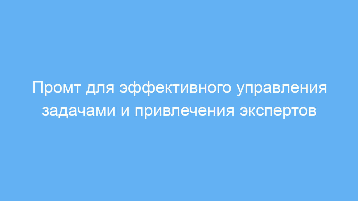 Этот промт предназначен для пользователей, которым важно достичь определённых целей с помощью искусственного интеллекта и привлечь при этом профильных экспертов. Он особенно полезен менеджерам, проектным руководителям, консультантам и всем, кто сталкивается с комплексными задачами, требующими пошагового анализа и профессионального подхода.