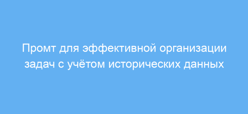 Этот промт помогает с умом и эффективностью управлять большим количеством задач, используя проверенную историческую информацию и продуманный подход. Вы экономите время и силы, получая творческие и логичные рекомендации по организации дел.
