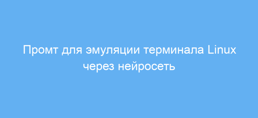 Промт имитирует терминал Linux, отвечая только выводом команд, которые вы введёте. Он не добавляет объяснений и комментариев, что делает взаимодействие максимально похожим на стандартный терминал. Вы вводите только команды, а нейросеть возвращает результат, заключённый в уникальный блок кода, что удобно для последующего копирования или анализа.