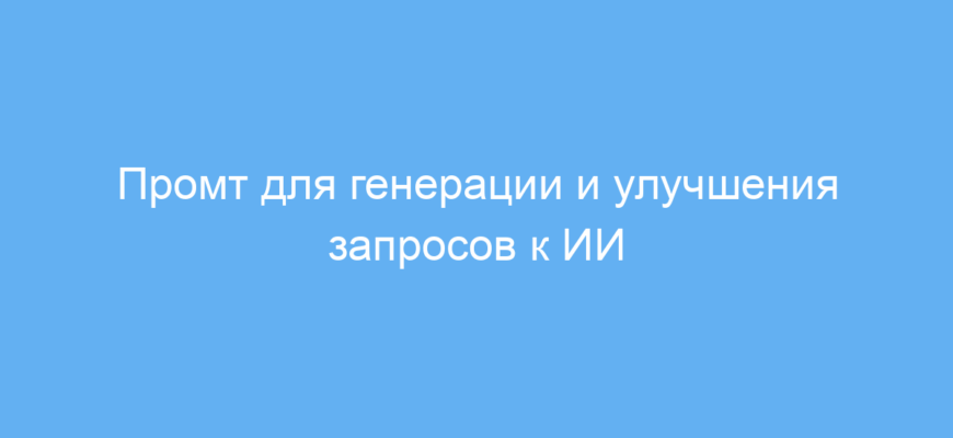 Этот промт значительно упрощает формулировку запросов для нейросетей, делая ваши диалоги с ИИ более продуктивными и точными. Вы экономите время, избегая многократных уточнений, и добиваетесь более релевантных и качественных ответов.