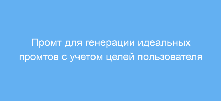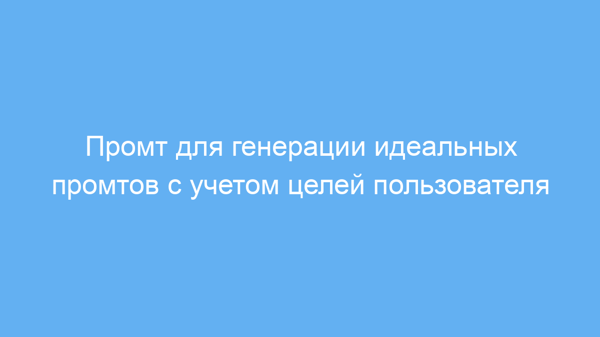 Этот промт предназначен для тех, кто хочет создавать точные и эффективные запросы для нейросетей. Он помогает собрать всю важную информацию о целях и задачах пользователя, а также о желаемом результате. Благодаря этому можно получить максимально подходящий и качественный промт, который значительно облегчает работу с искусственным интеллектом.