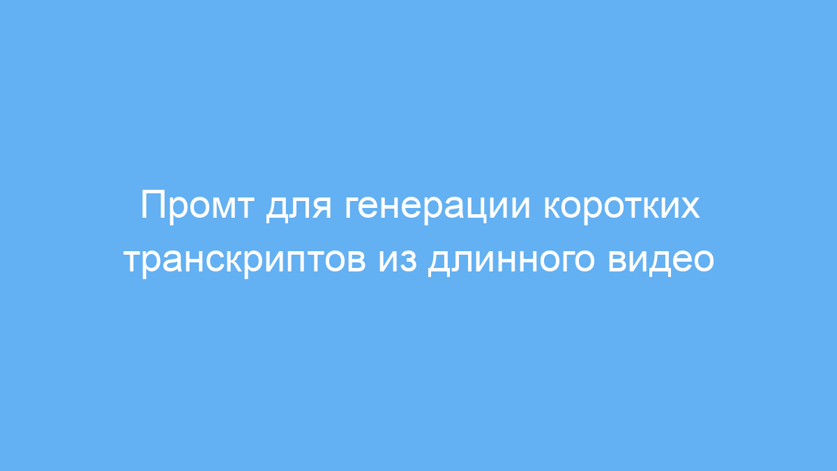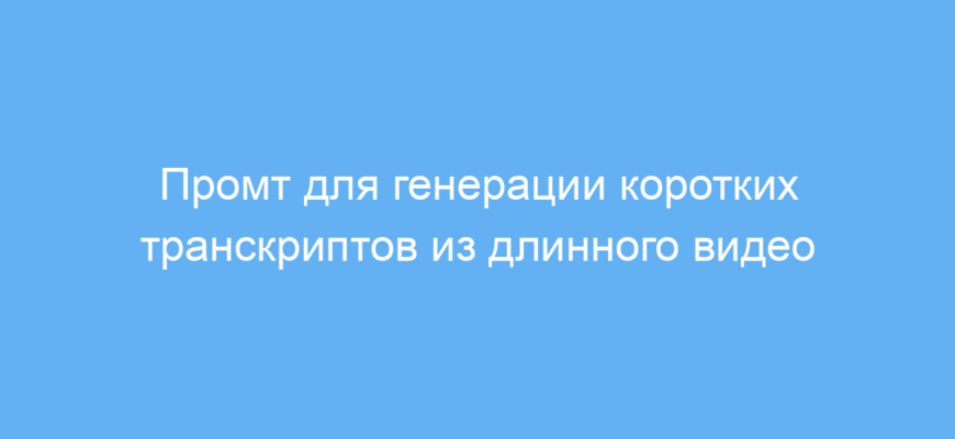 - Перед началом работы подготовьте полный и читаемый транскрипт видео — это основной источник для генерации коротких частей.