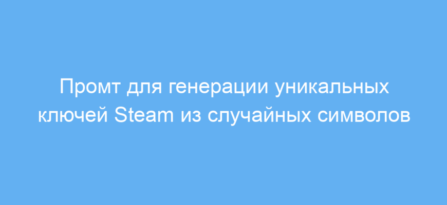 Использование данного промта позволяет быстро получить готовый и уникальный набор фейковых ключей Steam для любых нужд — тестирования, обучения или демонстрации. Это экономит время и исключает необходимость самим придумывать длинные сложные коды вручную.