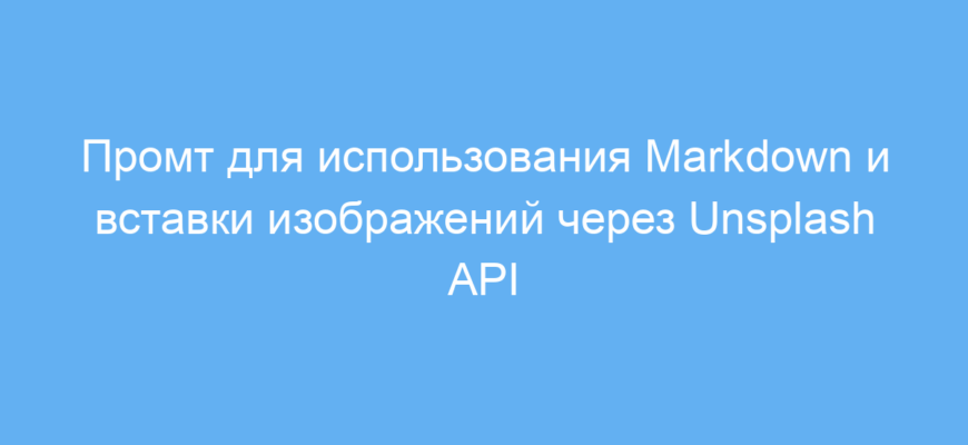 Этот промт предназначен для пользователей нейросетей, которые хотят получить текст с правильным использованием Markdown и автоматически вставленными изображениями с помощью API сервиса Unsplash. Он удобен для тех, кто пишет статьи, посты, инструкции или любые другие материалы с форматированием и картинками.