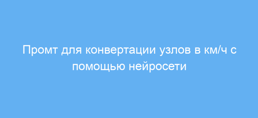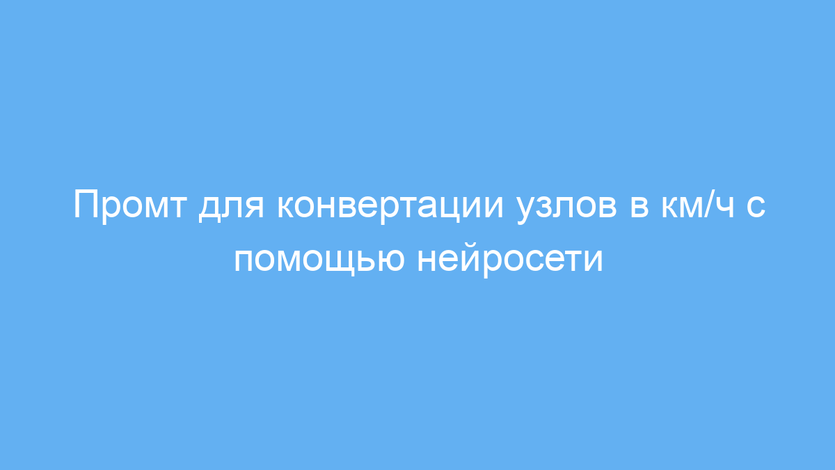 Этот промт предназначен для пользователей, которым необходимо быстро и точно перевести скорость из узлов в километры в час (км/ч). Часто такая задача встречается в морской навигации, авиации, при изучении метрических и авиационно-морских единиц измерения скорости, а также в технических и научных расчетах.