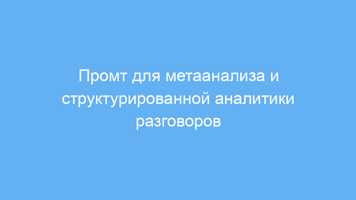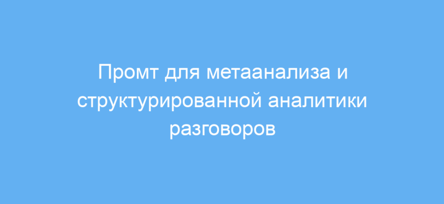 Этот промт позволяет вывести из разговоров и диалогов максимально структурированную и понятную информацию. Он облегчает анализ сложных тем, автоматизирует процесс визуализации и упрощает интеграцию с другими системами. Используя метаанализ и разные типы структур данных, вы экономите время и повышаете точность обработки информации.