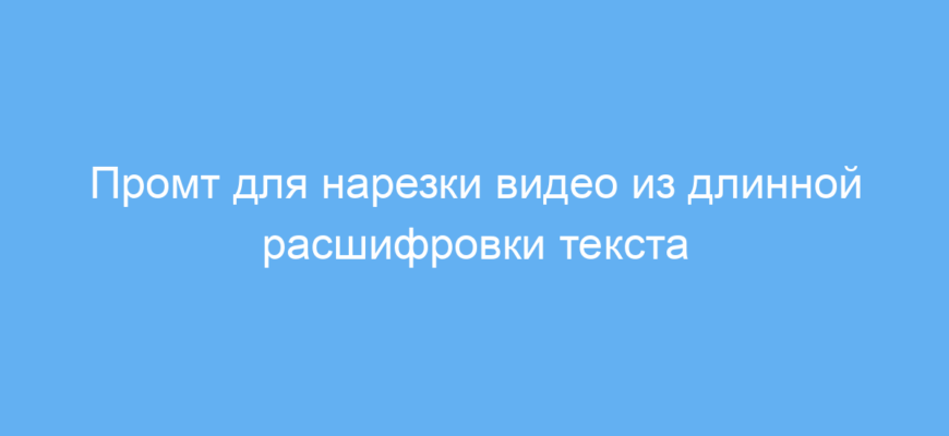 Данный промт значительно упрощает и ускоряет процесс подготовки коротких видео из больших текстов, делая его доступным даже для пользователей без навыков монтажа. Вы получаете готовые к использованию расшифровки клипов подходящего размера и содержания. Это экономит время, повышает качество контента и помогает создавать вирусные видео в разы быстрее.
