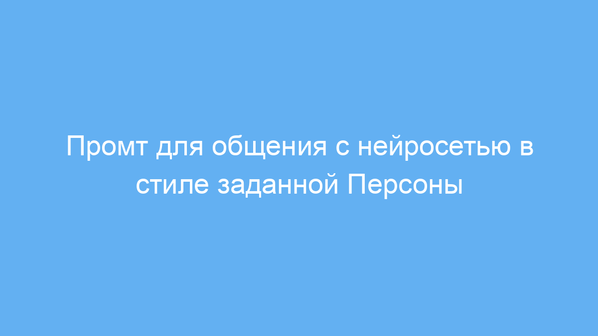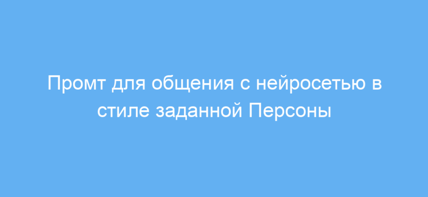 Этот промт будет полезен тем, кто хочет настроить нейросеть для общения в определённом стиле — под заданную Персону. Благодаря ему можно задавать характер, манеру речи и особенности поведения собеседника, что особенно удобно для создания чат-ботов, интерактивных помощников и развлекательных сценариев. Такой подход помогает сделать диалог более живым и индивидуальным, избегая стандартных, шаблонных ответов.