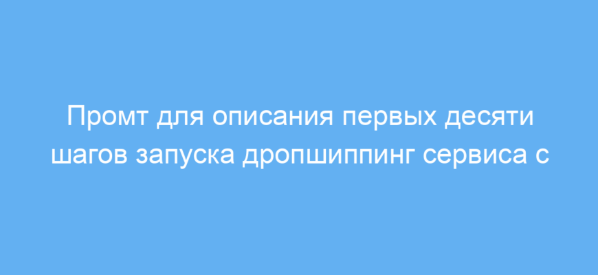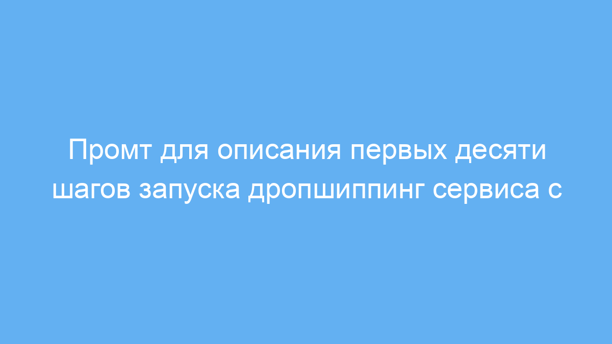 Этот промт создан для предпринимателей, маркетологов и стартаперов, которые планируют запустить дропшиппинг сервис с продажей определённого товара. Он помогает получить чёткий и понятный план из десяти простых и реалистичных шагов для успешного старта бизнеса.