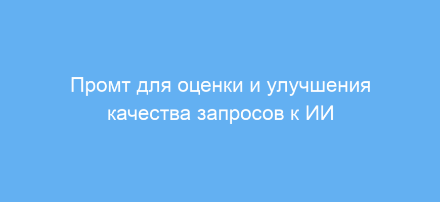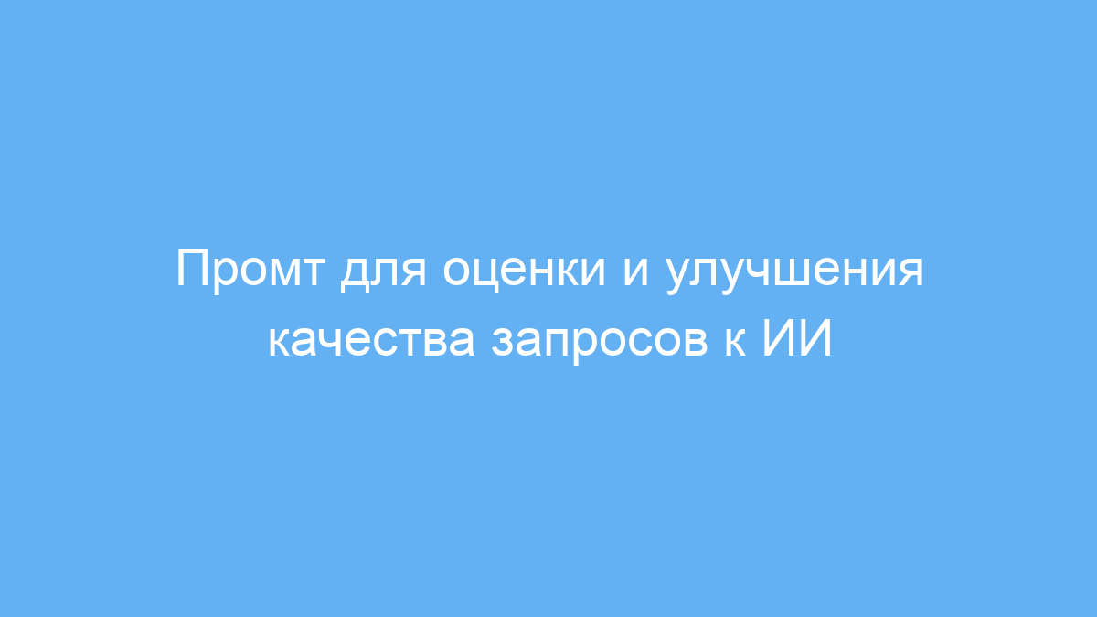 - Перед использованием вставьте в этот промт конкретный запрос, который хотите проверить и усовершенствовать. Чем точнее вы сформулируете исходный промт, тем полезнее будет оценка.