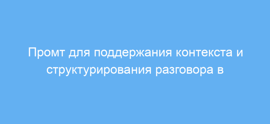 Данный промт экономит ваше время и силы, позволяя нейросети работать эффективно даже при ограничениях по объему контекста. Он структурирует информацию, помогает сохранить важные детали и вести диалог в нужном направлении без потери связности. Благодаря этому вы получаете более точные и полезные ответы.