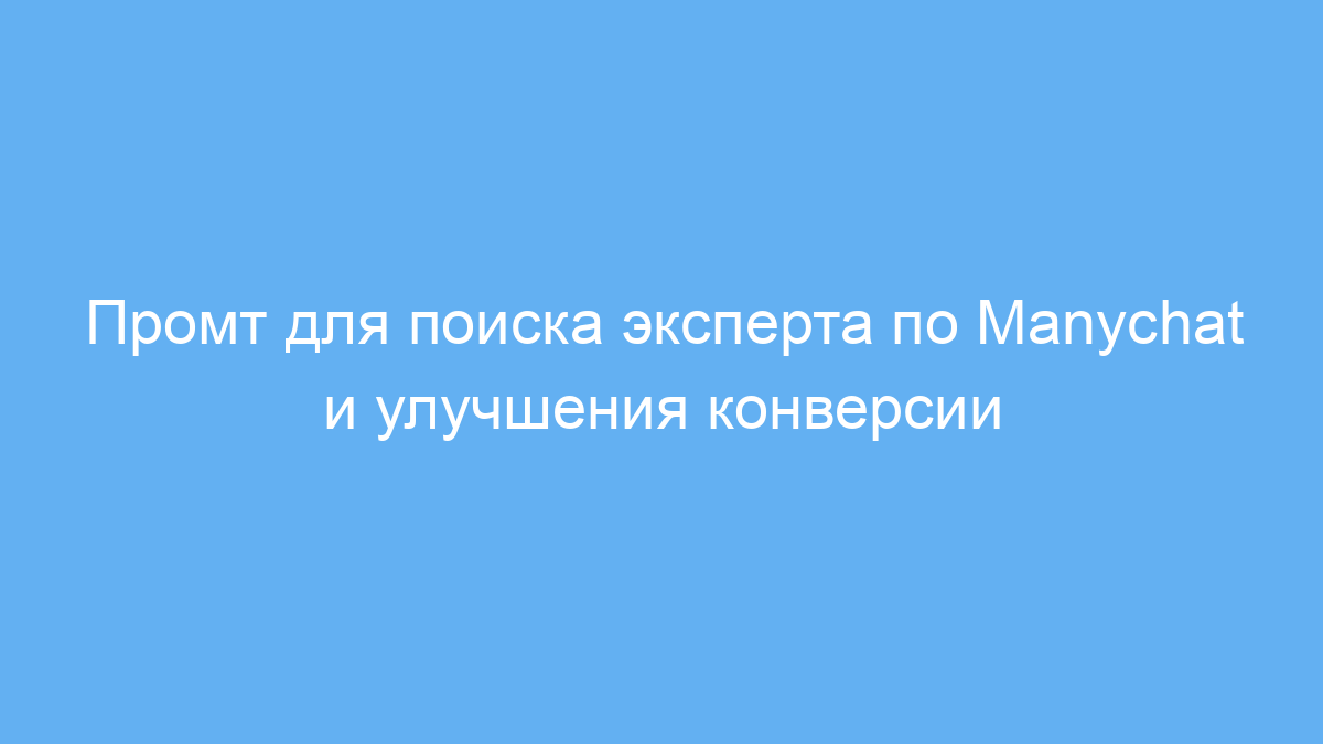 Этот промт экономит ваше время на формулировку запроса специалисту Manychat и помогает быстро найти профессионала с нужным опытом. Вы получаете четкий и понятный запрос, который привлекает экспертов, готовых улучшить конверсию и автоматизации вашего проекта.