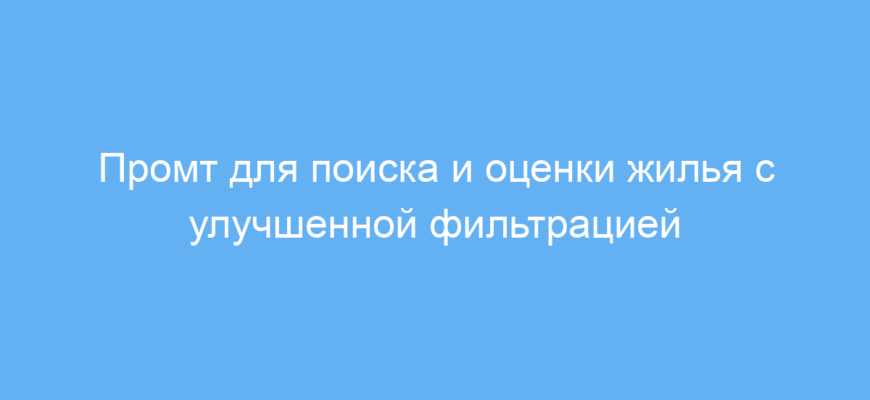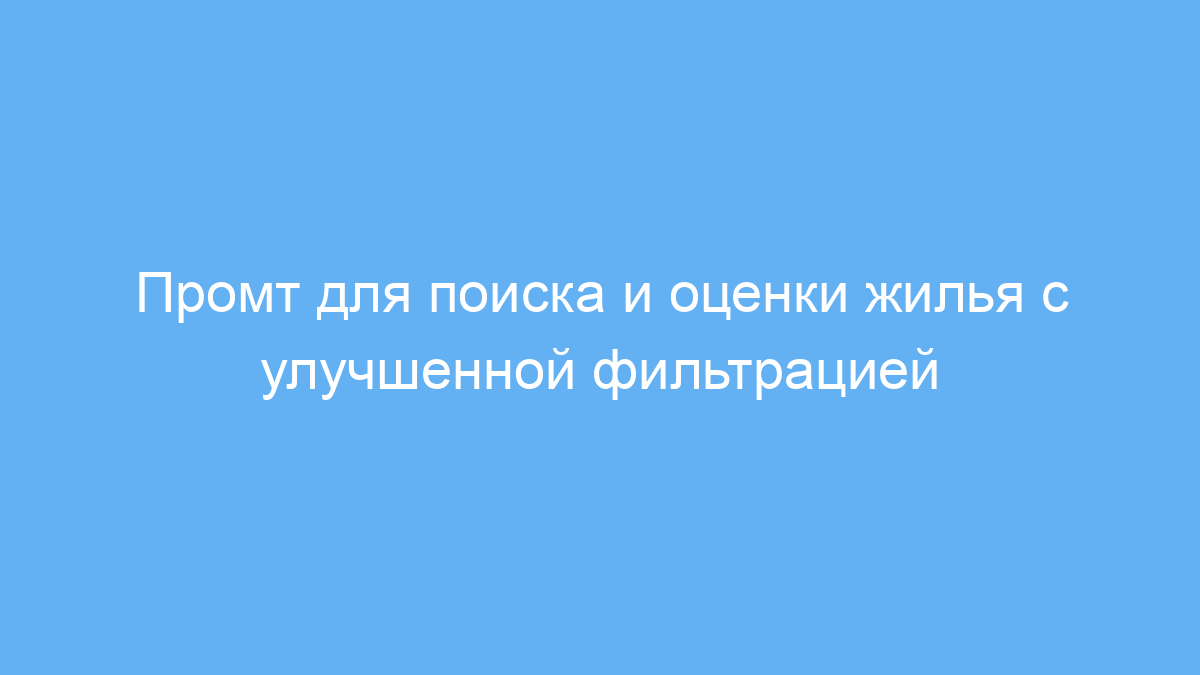 Промт помогает решить задачу поиска или разработки удобного сервиса для поиска жилья с расширенной фильтрацией, удобным интерфейсом и точной оценкой недвижимости. Это упрощает работу программистов, маркетологов и менеджеров, которые занимаются созданием сайтов или приложений для недвижимости.