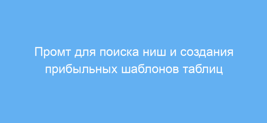 Для максимально точного результата стоит дополнительно указать критерии поиска ниш. Например, добавить параметры оценки конкуренции или описать целевую аудиторию. Можно также запросить конкретные функции шаблонов или тематику – финансы, планирование, менеджмент и т.д.