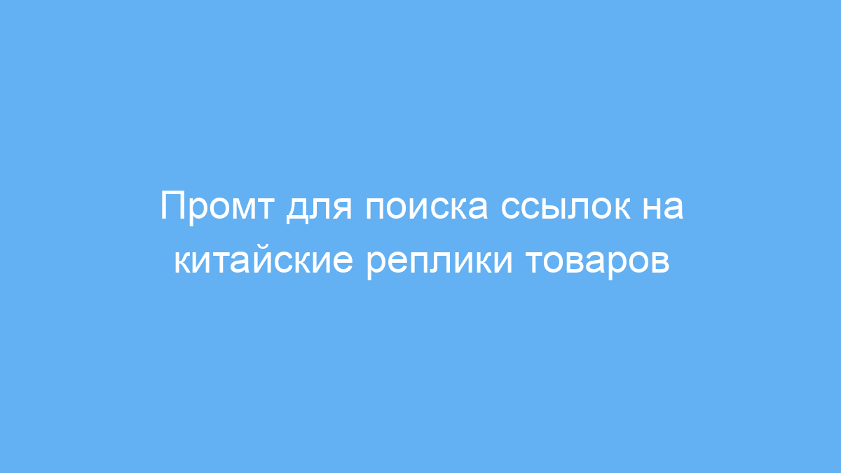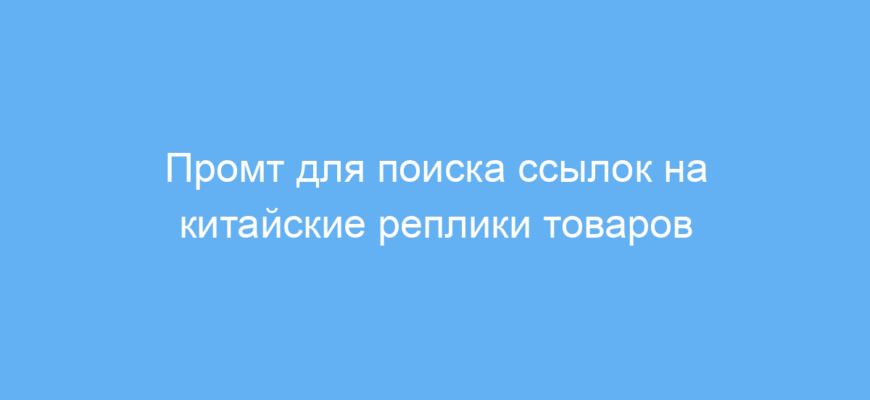 Этот промт создан для тех, кто ищет качественные и доступные реплики товаров из Китая. Он особенно полезен покупателям, которые хотят быстро находить нужные им копии популярных брендов по низкой цене, экономя время на самостоятельный поиск. Такой подход помогает избежать долгих поисков среди множества сайтов и сомнительных предложений.