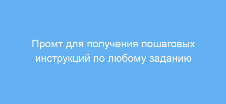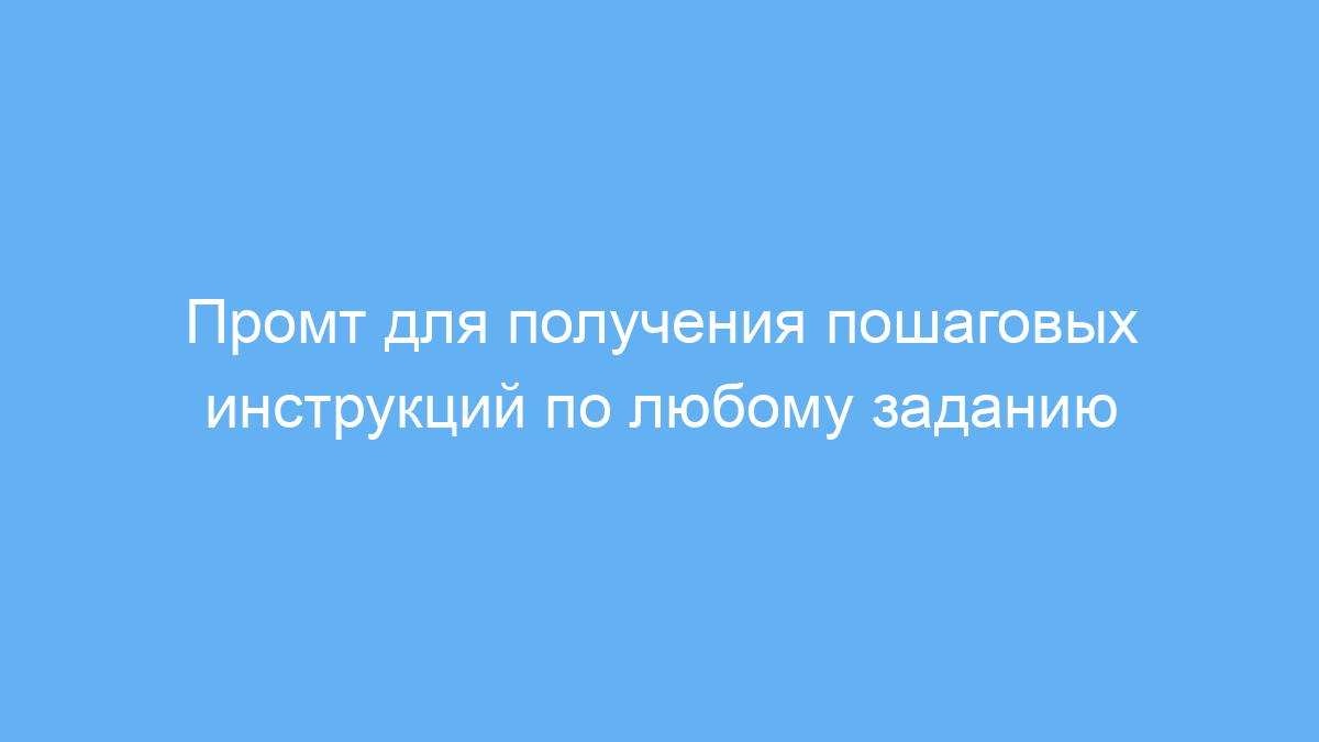 С помощью этого промта вы легко получите понятные поэтапные инструкции для выполнения почти любой задачи. Он помогает структурировать информацию, настроить работу с нужными приложениями и избежать путаницы. Особенно это экономит время и снижает стресс при освоении новых действий.
