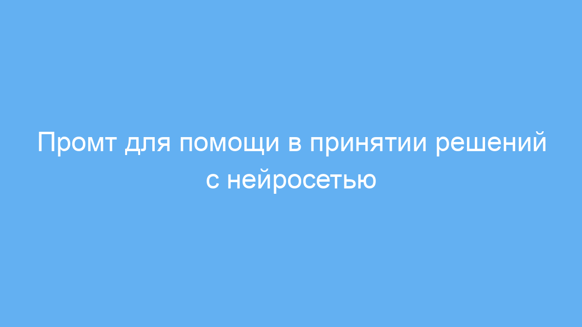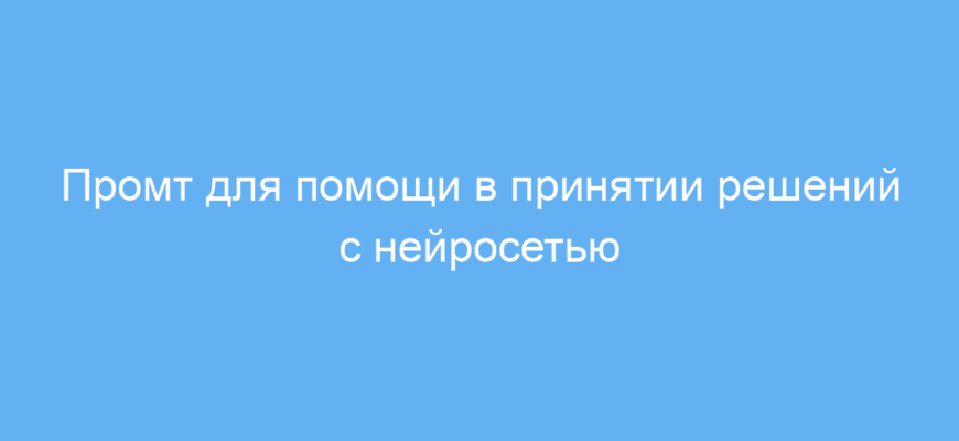 Этот промт экономит время и силы при принятии сложных решений. Он структурирует размышления, помогает взвесить все «за» и «против» разных вариантов и приходит к единому точному выбору без сомнений и компромиссов. Это отличный инструмент для личной и рабочей сферы.