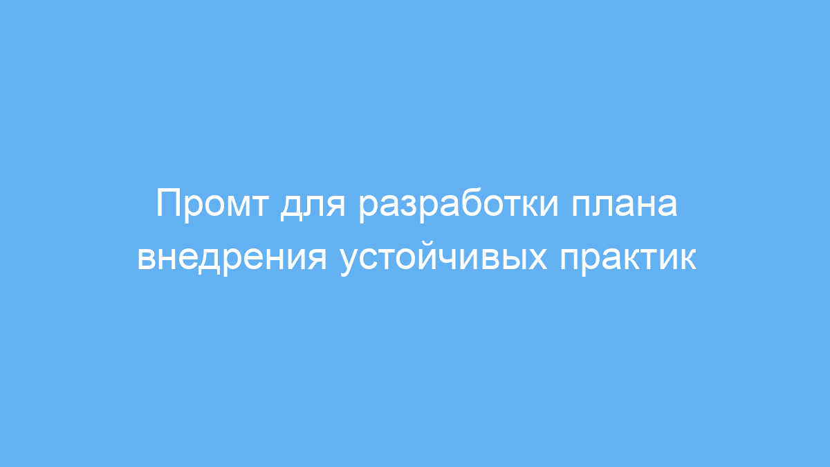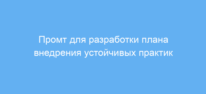 Этот промт предназначен для руководителей, менеджеров проектов, специалистов по устойчивому развитию и предпринимателей, которые стремятся создать детальный и эффективный план внедрения устойчивых практик в своей организации. Он помогает четко структурировать задачи и рекомендации, связанные с экологической безопасностью, социальной ответственностью и управлением рисками.