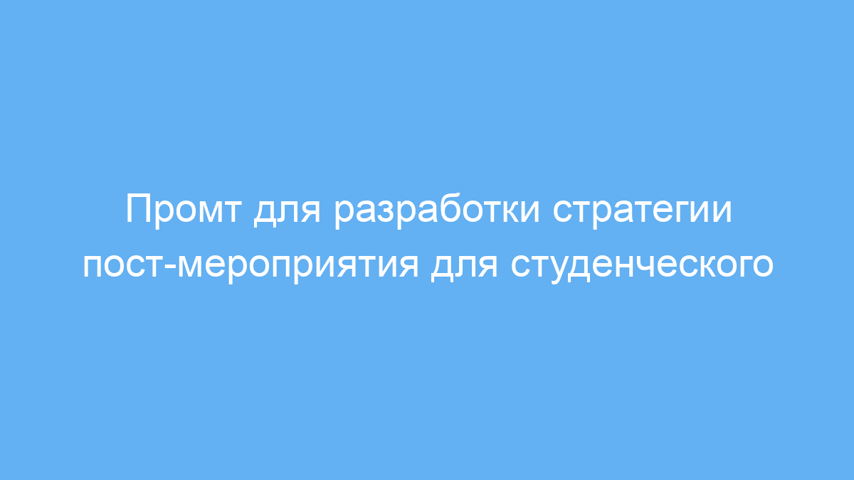 Использование данного промта значительно упрощает задачу составления комплексной и эффективной стратегии после студенческого мероприятия. Он помогает не упустить важные этапы взаимодействия с участниками, экономит время на поиск идей и систематизирует подход к работе.