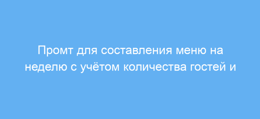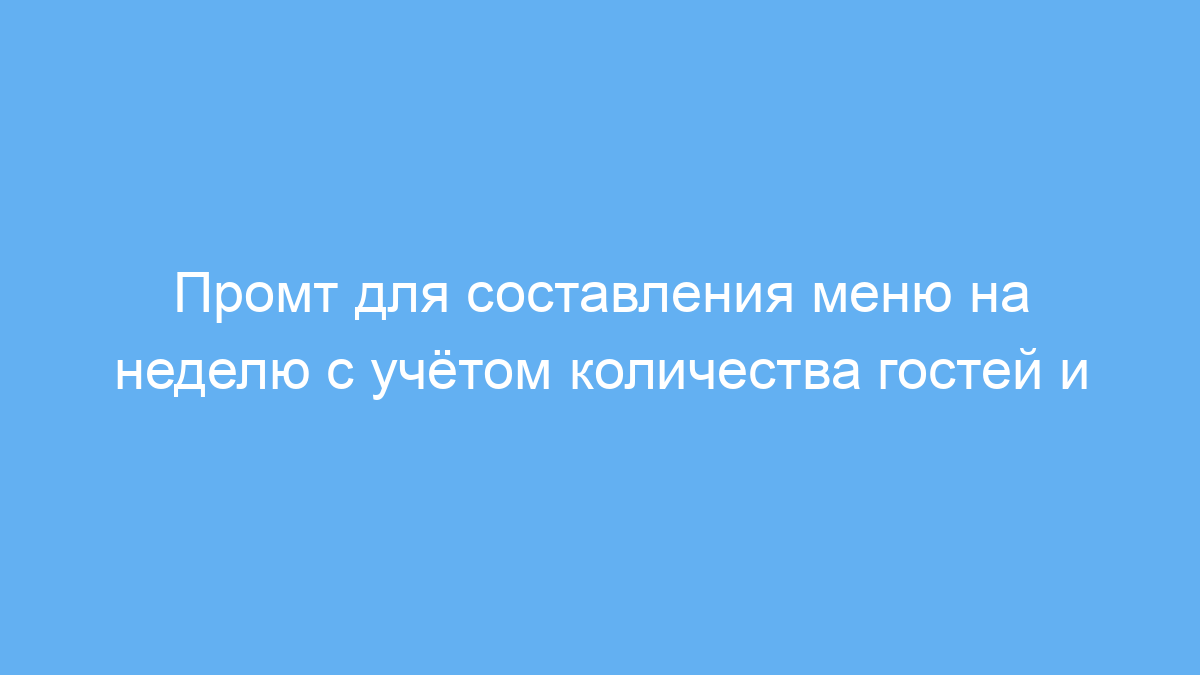Данный промт позволяет легко и быстро составлять сбалансированное меню с учётом потребностей и ограничений гостей. Он экономит время и помогает избежать ошибок в планировании питания для разных случаев и численности компаний.