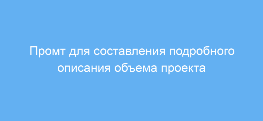 Данный промт существенно упрощает процесс подготовки полного и структурированного описания объема проекта. Его применение экономит время и помогает избежать пропуска важных деталей, упрощая коммуникацию между участниками проекта. Вы получаете четкое руководство для успешного запуска и управления любым проектом в выбранной отрасли.