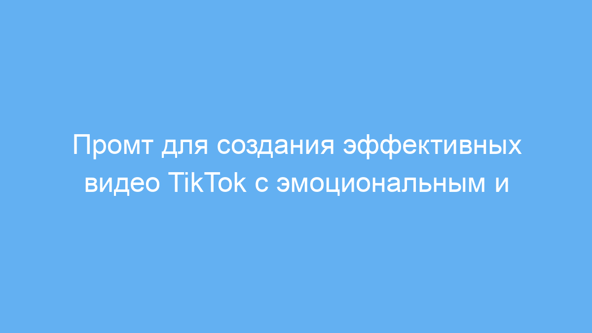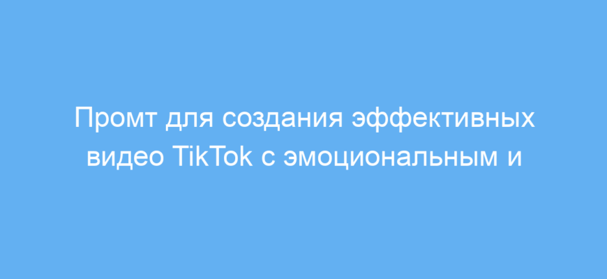 Используя этот промт, вы получаете чёткую структуру для создания видео с учётом эмоционального тонального настроя и функциональных инструментов. Это ускоряет процесс и повышает эффективность видео на TikTok, экономит время и позволяет системно работать с креативом и аналитикой.